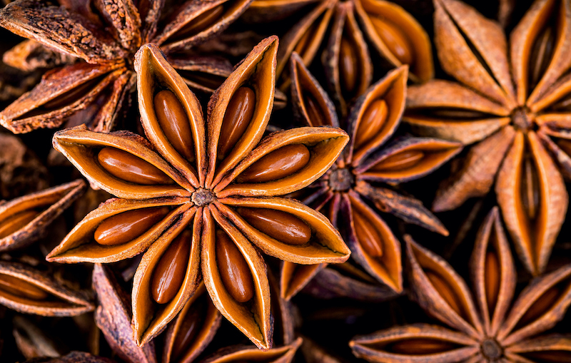 Sternanis ist nicht nur ein optisches Highlight im Winter. Sein anisartiger, süsslicher Duft wirkt beruhigend. Das darin enthaltene Anethol wirkt zudem schleimlösend und und kann die Verdauung unterstützen. In Tees, Punsch und Gebäck ist Sternanis ein echter Bauchschmeichler.