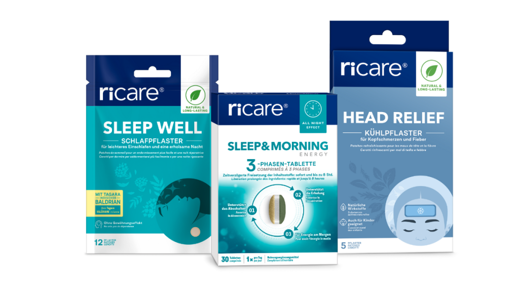 Die eben vorgestellten ricare® Produkte sind im Einzelhandel bei Coop sowie online erhältlich (UVP): ricare® Sleep & Morning Energy, 30 Tabletten CHF 15.95, ricare® Schlafpflaster Sleep Well, 12 Stück CHF 9.95, ricare® Kühlpflaster Head Relief, 5 Stück CHF 9.95.