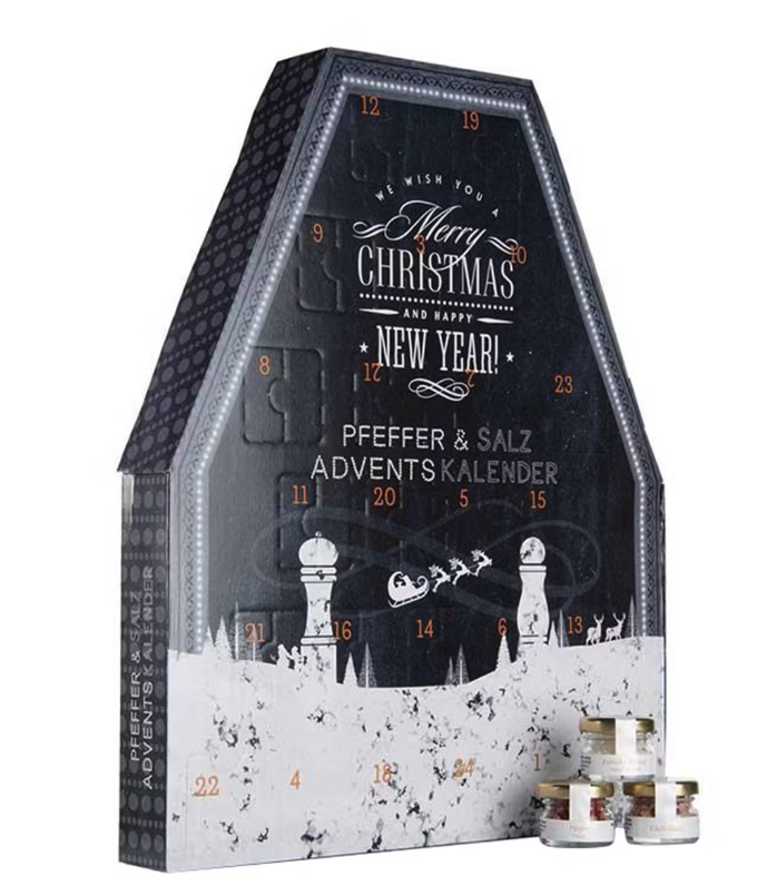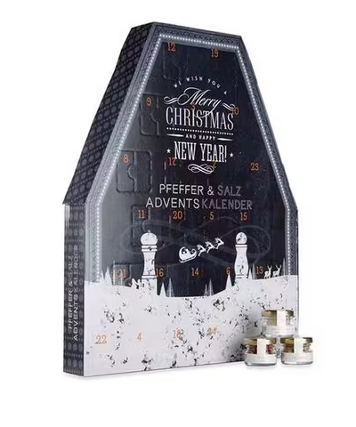 Dieser Adventskalender bringt Feuer in die Küche: 24 edle Sorten Pfeffer und Salz für Männer und Frauen mit Geschmack warten hinter den Türchen. Ein Geschenk, das garantiert Würze und Stil in die Vorweihnachtszeit bringt. Preis: CHF 58.95