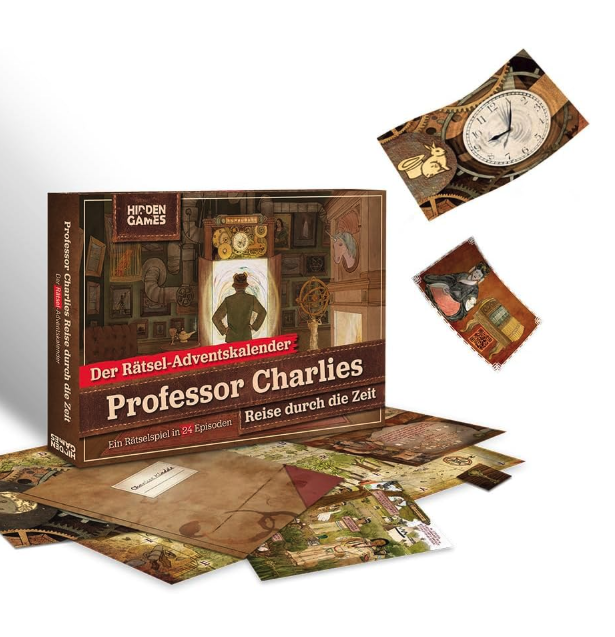 Das perfekte Advents-Geschenk für die ganze Familie: Das Spiel «Hidden Games: Professor Charlies Reise durch die Zeit» bietet viel Rätselspass für 24 Tage. Anhand von rätselhaften Botschaften und Spezialeffekten gilt es den Spuren des verrückten Professors Charlie zu folgen. Preis: CHF 23.–