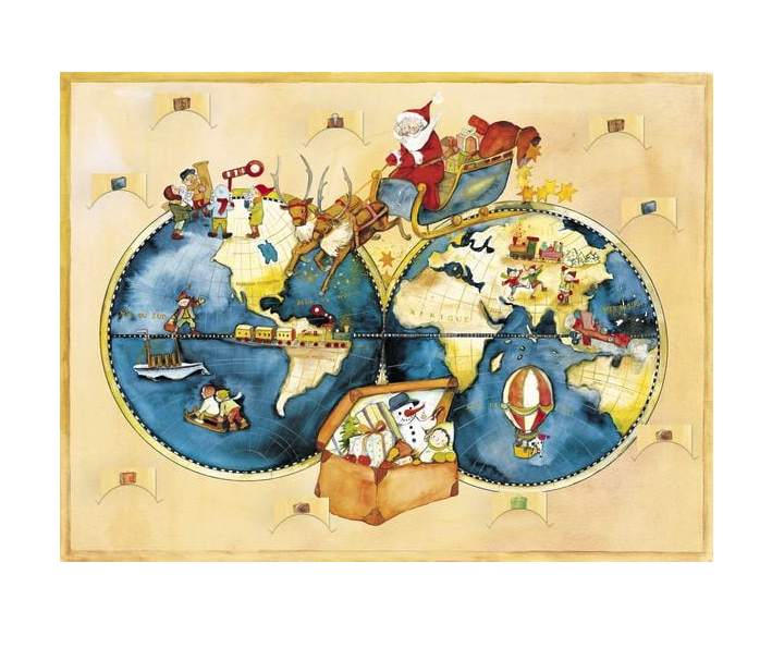 Ein aparter Kalender ganz ohne Zuckerschock: Der Zettel-Adventskalender enthält 24 Briefchen und Bändchen zum Aufhängen. Die Vorderseite ist mit Goldglimmer veredelt und auf der Rückseite wirst du auf eine Weltreise mit zauberhaften Illustrationen und humorvollen Texten rund um Weihnachten entführt. Preis: CHF 19.50
