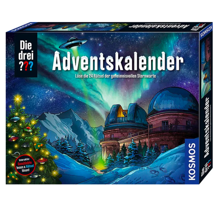 Advent mal anders: Statt Schokolade wartet hier jeden Tag ein neues Rätsel, das Köpfchen und Kombinationsgabe fordert. Der geheimnisvolle Rätsel-Adventskalender der DREI ??? (ab 8 Jahren) bringt definitiv Spannung in die Vorweihnachtszeit und ist perfekt für alle Kids, die ihre Neugier nicht bis Weihnachten zügeln wollen. Preis: CHF 16.60