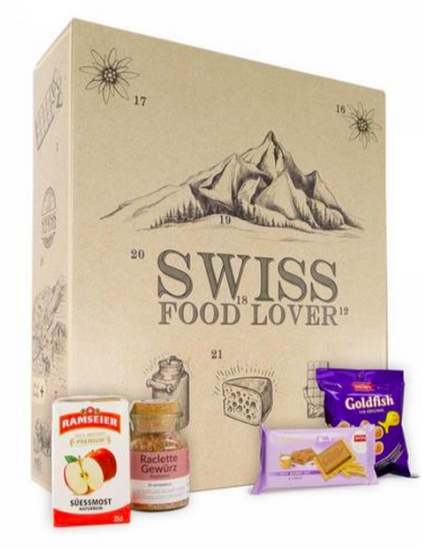 Ein kulinarisches Countdown-Erlebnis: Hinter jedem Türchen dieses genussvollen Adventskalender wartet eine neue Schweizer Delikatesse. Die leckeren Snacks und Getränke stammen von traditionsreichen Schweizer Marken wie Lindt, Raselli und Ramseier sowie aus kleinen Manufakturen. Preis: CHF 132.95