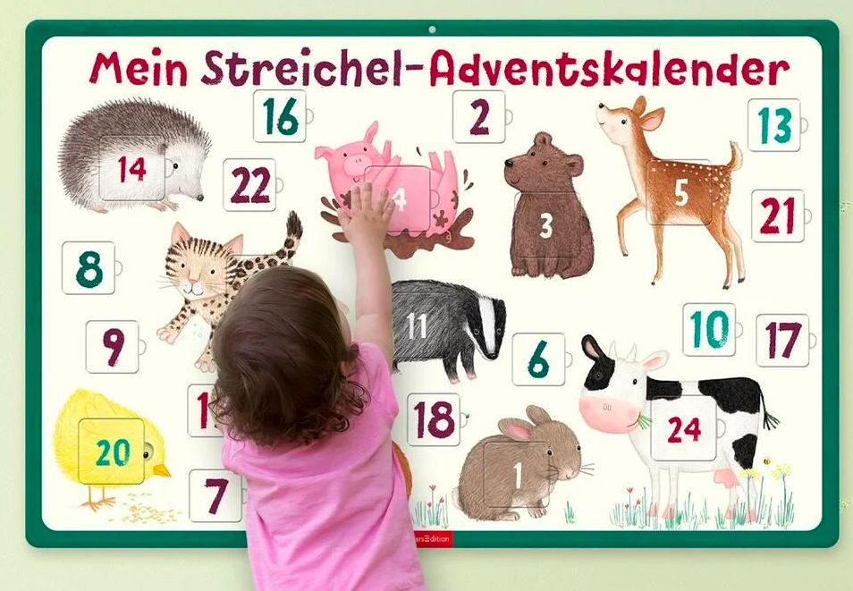Für Nachwuchs-Entdecker: Viel Spass erwartet kleine Kinder beim Streichel-Adventskalender mit dicker Pappe und Fühlelementen hinter den Türchen. Preis: CHF 28.90
