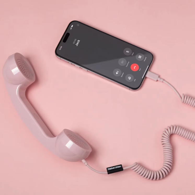 Geschenkhit für alle Retrofans und Telefon-Junkies: Retro-Telefonhörer fürs Smartphone mit hochwertigem Mikrophon und Lautsprecher, optimiert für Videoanrufe (Preis: CHF 39.95).