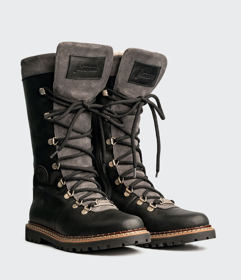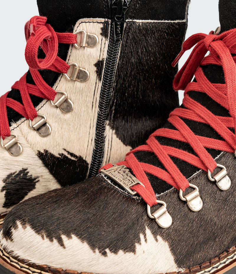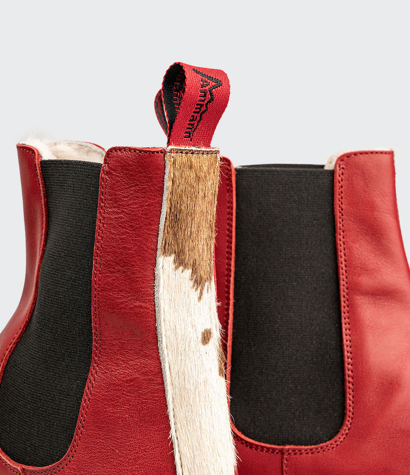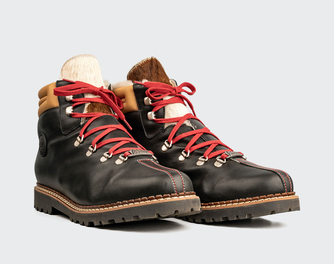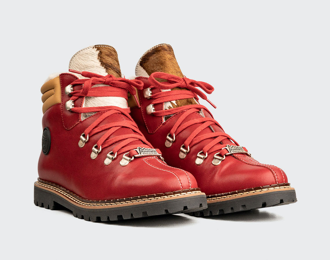 Der ikonische Town-Boot bildet das Herzstück der Kollektion: ein Fellboot, der alpine DNA und urbanes Selbstverständnis vereint. Ob in Kuhfell, Tiefschwarz, leuchtendem Rot oder sanftem Ecru, der Town ist kein Trend-Piece, sondern eine Haltung. Material, Silhouette, Handwerk – hier spricht jedes Detail.