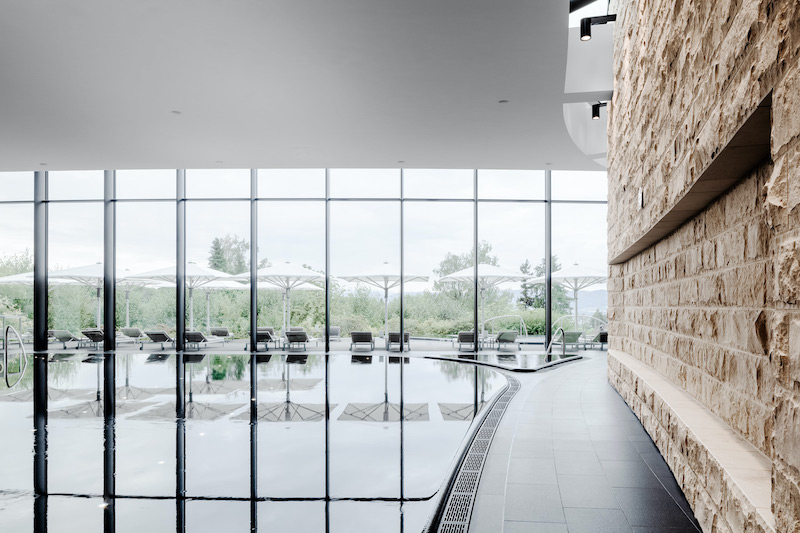 Von der lichtdurchfluteten 25-Meter-Pool-Aqua-Zone mit Blick ins Grüne führt der Weg ins Ladies’ Spa und das Gentlemen’s Spa mit Sauna, Dampfbad, Fussbad, Aromapool, Steampots, Tauchbecken und Solarium. In den anschliessenden Ruheräumen mit gedämpften Farben, natürlichen Materialien und dezenten Klängen herrscht beinahe klösterliche Stille. Das Spa bietet zudem eine grosse Auswahl an Gesichtsanwendungen, Massagen und Pflegeritualen für den ganzen Körper sowie ein Fitnessstudio.