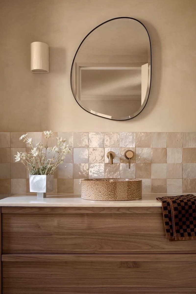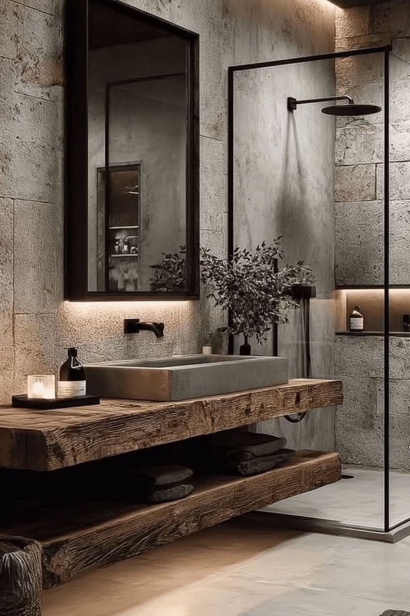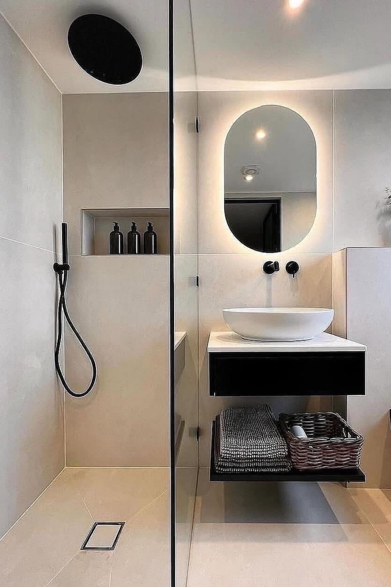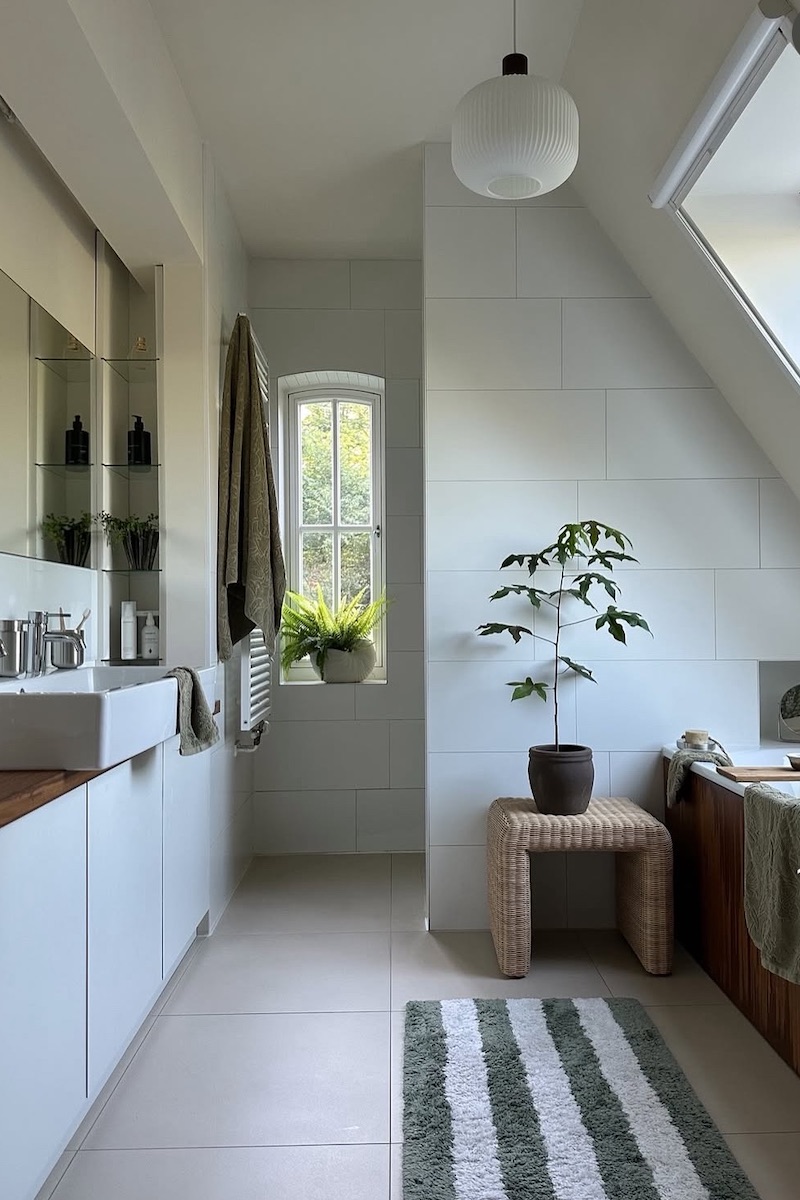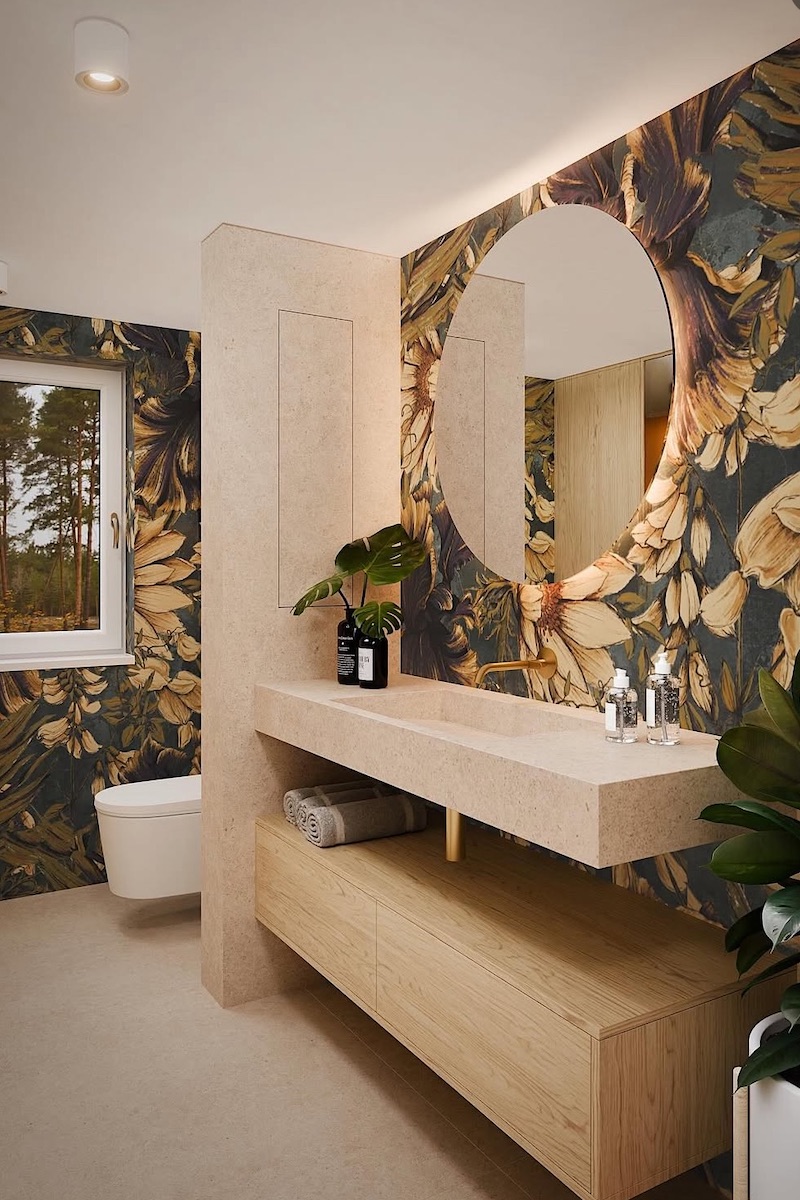 Unser Extra-Tipp: Kombiniere natürliche Materialien mit glänzenden Oberflächen, wie zum Beispiel Bambusregale neben Marmor-Ablagen oder Holzaccessoires neben einem Metall-Waschbecken. Das Spiel aus warmen und kühlen Elementen schafft Tiefe, Spannung und ein luxuriöses Wohlfühlambiente.