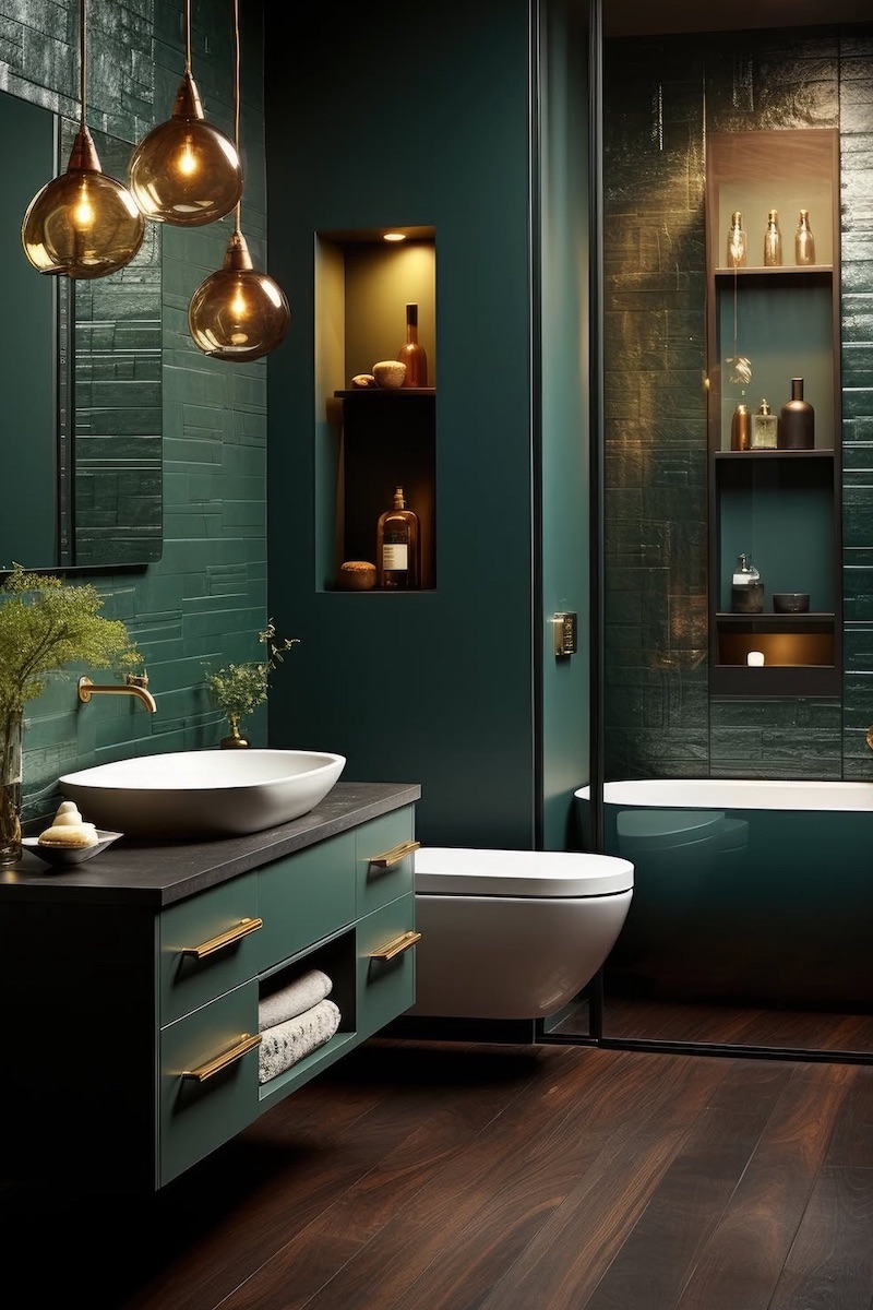 Wahre Eleganz im Interieur entsteht, wenn Authentizität spürbar wird. Dein Badezimmer darf ruhig deine Persönlichkeit widerspiegeln und deine individuellen Vorlieben zelebrieren. Kleine, sorgfältig ausgewählte Details verwandeln ein standardisiertes Bad in ein stilvolles Refugium. Wie wäre es zum Beispiel mit einer alten Vintage-Parfümflasche auf dem Regal, einem liebevoll gerahmten Kunstprint an der Wand oder einer filigranen Skulptur als visuelle Highlights?
