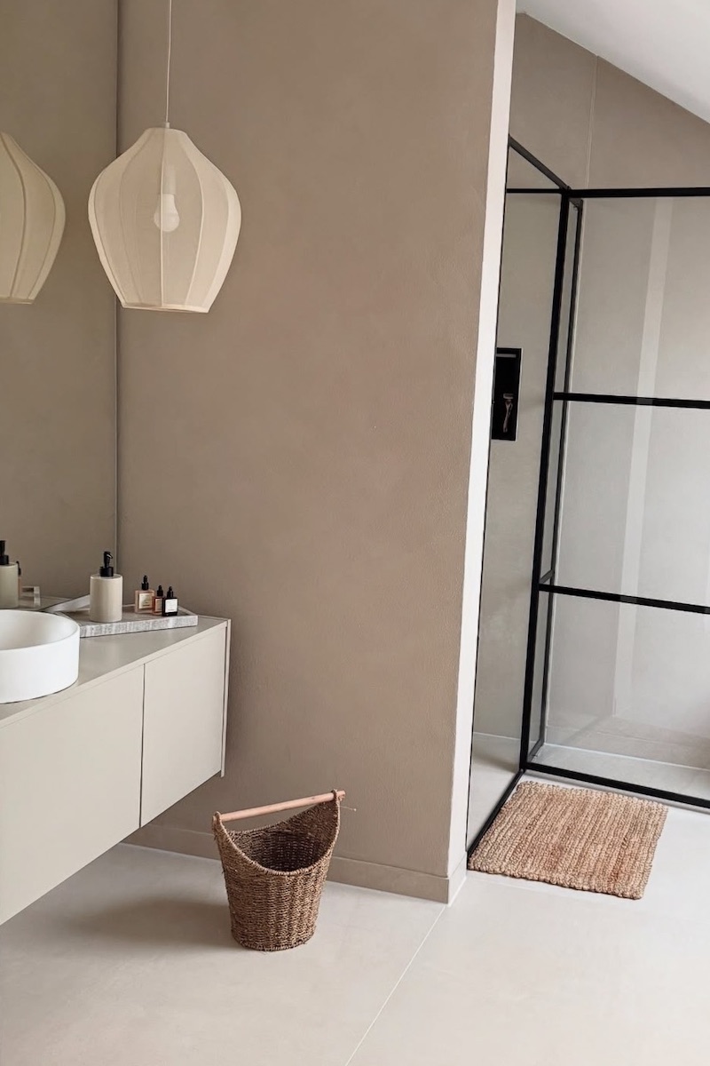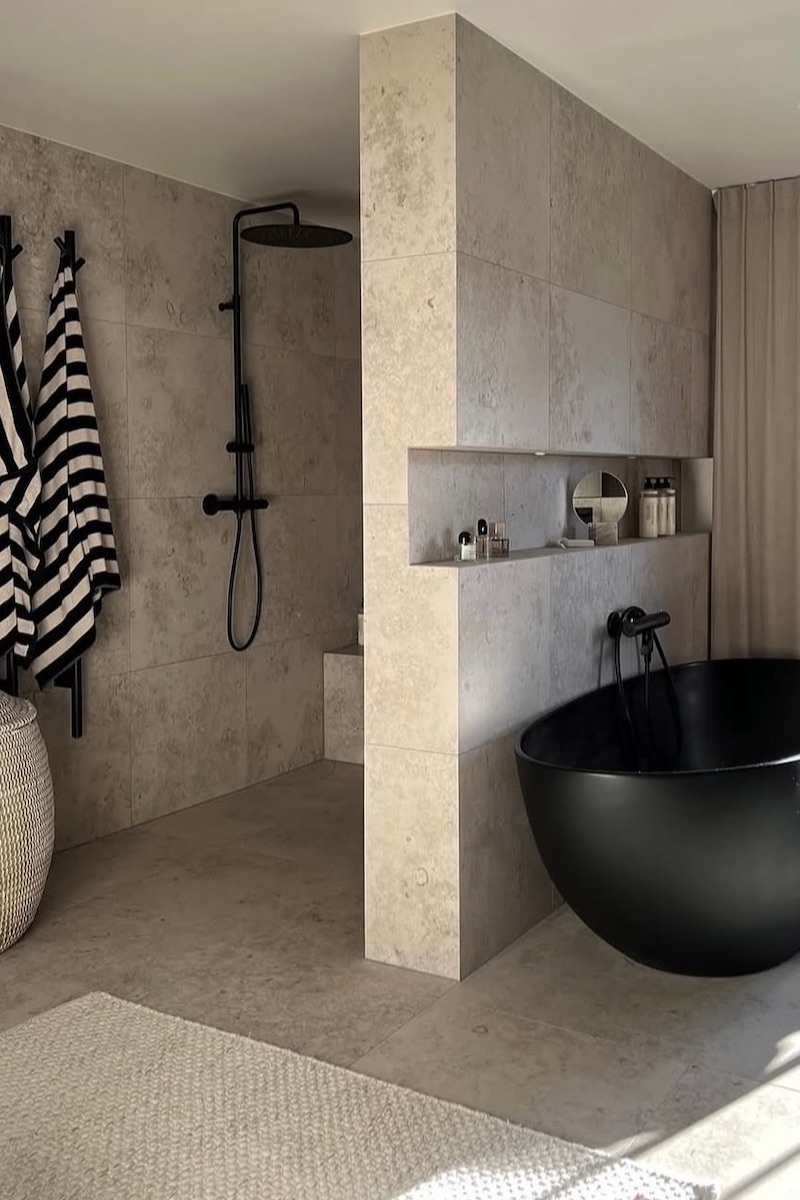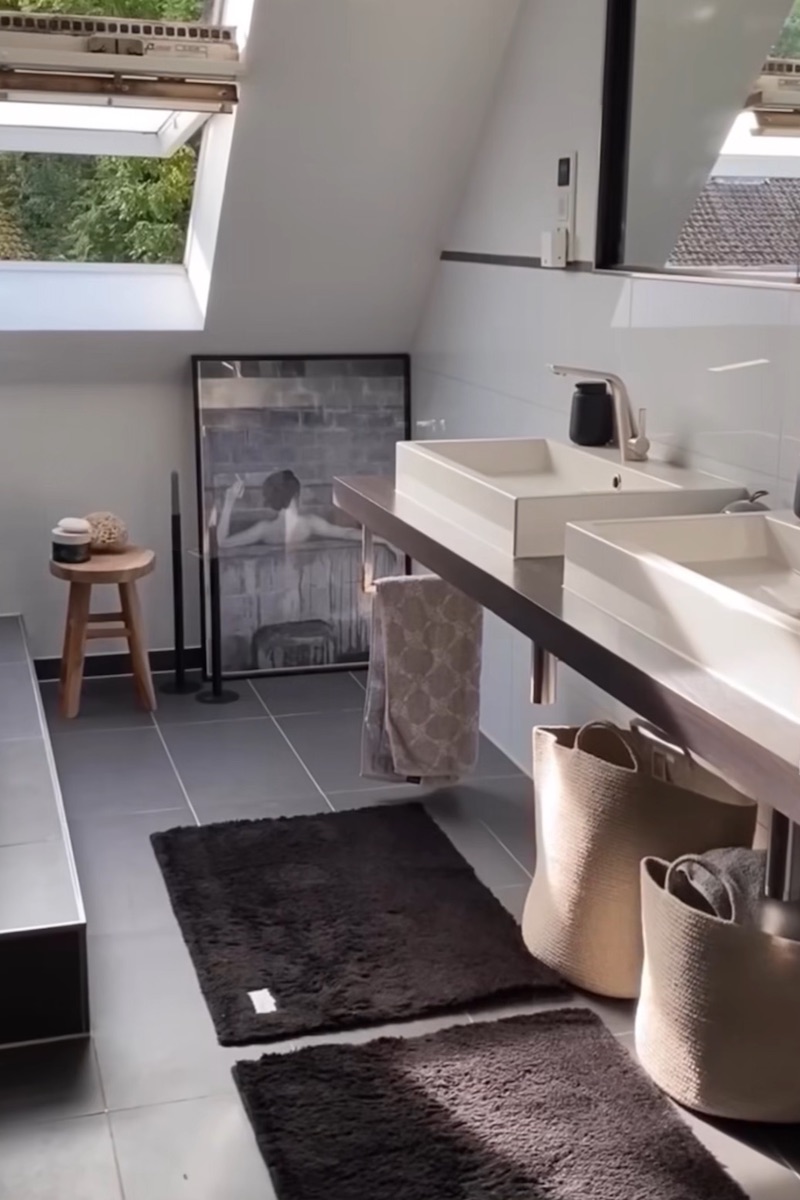 Das Wohlgefühl in einem Badezimmer beginnt schon beim ersten Schritt über den Boden. Natürliche Texturen wie weiche Baumwolle, Bambus, Holz oder warmes Steinzeug schaffen sofort Ruhe und Harmonie. Wichtig: Ein flauschiger, dicker Badteppich unter den Füssen, grosse Handtücher in sanften, gedeckten Tönen und eine strukturierte Badematte verwandeln das tägliche Ritual in ein sinnliches Erlebnis.