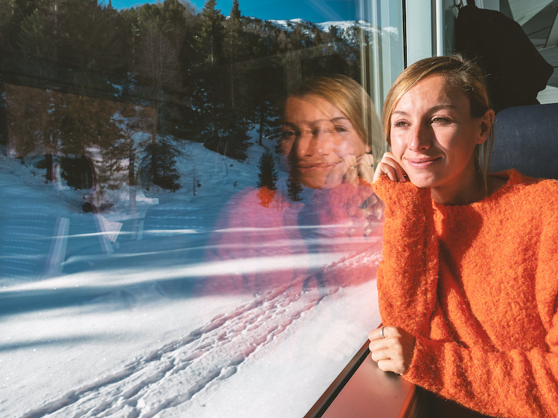 Bild: SBB Rail Away Wenn der Winter die Schweiz in ein funkelndes Paradies verwandelt, beginnt der Zauber deines Ausflugs lange bevor du dein Ziel erreichst. Schon im warmen Zugabteil, das wie ein eleganter Salon mit Panoramaausblick durch verschneite Täler gleitet, oder in der Gondel, die sanft über weisse Hänge schwebt, spürst du dieses unvergleichliche Gefühl von Ruhe und Entschleunigung.