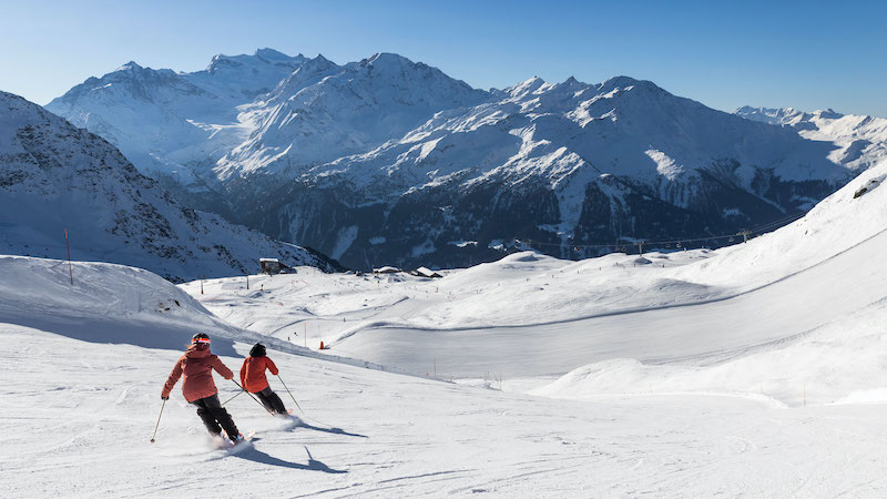 410 Pistenkilometer, 80 moderne Transportanlagen und sechs charmante Ferienorte – die 4 Vallées erfüllen selbst die höchsten Wintersportansprüche. Ob sanfte Abfahrten für entspannte Carving-Touren oder anspruchsvolle Hänge für Adrenalinjunkies: Jeder findet hier sein perfektes Terrain. Komplettiert wird das umfangreiche Freizeitangebot mit diversen Funparks, einer Schlittelbahn für ausgelassenen Familienspass und zahlreichen Möglichkeiten für Winterwanderungen. Und dann ist da noch der Mont Fort: Von seinem Gipfel eröffnet sich ein grandioser Rundblick über die gesamte Alpenwelt, von den majestätischen Gipfeln des Matterhorns bis zum strahlenden Mont Blanc.
